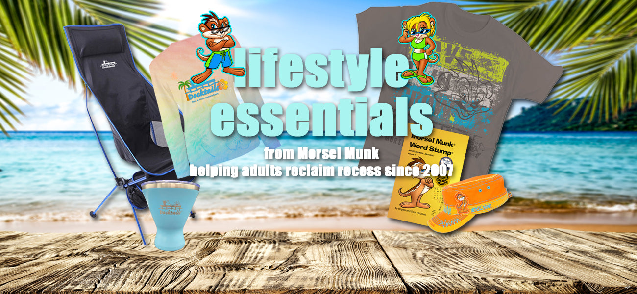 We're Brigitte and Scott, owners of Morsel Munk and its Docktails, HFGY (Have Fun Grow Young), and Word Stump trademarked brands. Short and simple, we're big kids and we love to have fun.